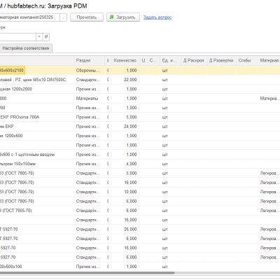 Вызвав команду «Загрузить» произойдет загрузка спецификаций и при необходимости привязка к заказу клиента.